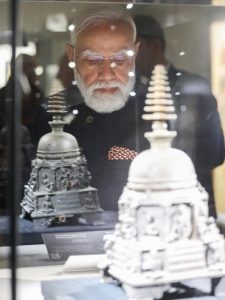 “වසර 127ක දිගු බලාපොරොත්තුවකින් පසු, අපේ දේශයේ වටිනා උරුමය නැවත සිය නිජබිම කරා පැමිණ තිබෙනවා. අද සිට ඉන්දියානු ජනතාවට මෙන්ම ලොව පුරා වෙසෙන බෞද්ධ ජනතාවට මෙම පූජනීය ධාතූන් වහන්සේ දැක බලා වැඳපුදා ගැනීමටත්, බුදුරජාණන් වහන්සේගේ ආශිර්වාදය ලබා ගැනීමටත් අවස්ථාව උදා වෙනවා. ගෝලීය බෞද්ධ උරුමයේ ආරක්ෂකයා සහ සංරක්ෂකයා ලෙස ඉන්දියාව නොසැලී සිටින බව මම අද දින ප්රකාශ කර සිටිනවා.”