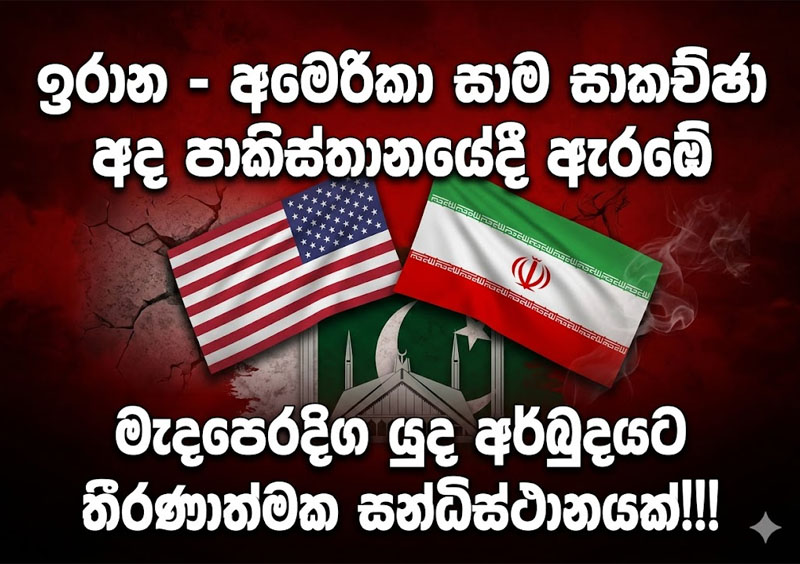ඉරානය අතර තීරණාත්මක සාම සාකච්ඡා අද (11) පාකිස්තානයේ ඉස්ලාමාබාද් නුවර 'සෙරීනා' (Serena Hotel) හෝටලයේදී ආරම්භ වීමට නියමිතය. පාකිස්තාන රජයේ මැදිහත්වීමෙන් මෙම සාකච්ඡා "වක්රාකාර ආකෘතියක්" (Proximity format) යටතේ එනම්, දෙපාර්ශ්වය එකම හෝටලයක වෙනත් කාමරවල සිට අතරමැදියන් හරහා අදහස් හුවමාරු කරගන්නා ආකාරයට පැවැත්වෙන බව විදෙස් මාධ්ය වාර්තා කරයි.