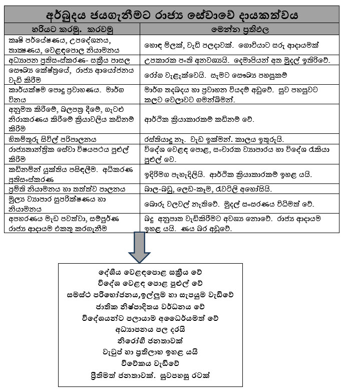 මැතිවරණයක් අභියස සිටින මොහොතක, දශක ගණනාවක වැරදි පරිභෝජන රටාවක මෙන්ම අර්ථ මෙහෙයවීමක නියැලීම කරණ කොටගෙන රට බංකොළොත්භාවයට ප්රකාශයට පත්වීමත් නිසා ජන ජීවිතය අසීරුතාවකට පත්වූ මොහොතක මෙම කෘතිය දේශපාලන හා රාජ්ය සේවයේ නියැලෙන්නන්ට පරිශීලනය යොදා ගැනීමට සැලැස්වීම මෙම කෘතිය රචකයින්ගේ අරමුණ විය.
