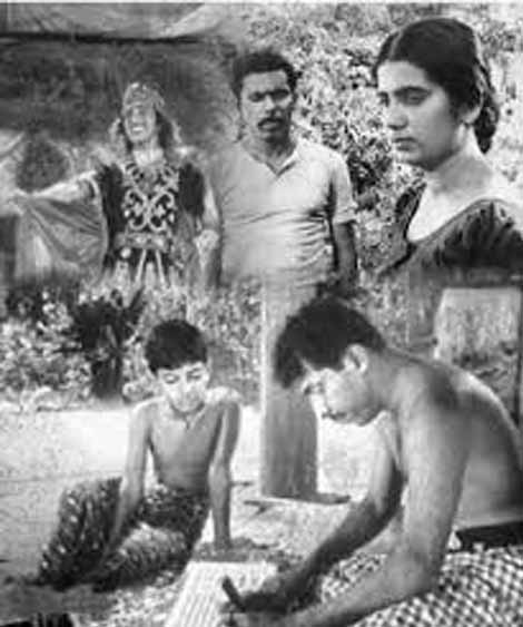 එදා හවස අපි දෙදෙනා සේකරයන් සමග ඔහුගේ මහගෙදරට නුදුරුව තාර පාර දෙපසට විහිදුණු වෙල්යාය මැදින් ගලන ඇළට ගොස් ගිලි ගිලී පීනමින් ඉර හැංගෙන තුරුම නෑවෙමු. සේකරයන් දිය බුං ගසමින් ඒ මේ අත පීනමින් නෑවේ පාසල් දරුවෙකු සේ සතුටින් ඉපිලෙමිනි. ඔහු එවේලේ මහ හඬින් නැඟූ සතුටු සිනා හඬ මේ දැන් ඇසෙන්නා සේය. පීනීම එතරම් හුරු නැති සුනන්දයන් නෑවේ ගොඩ හරියේ හිඳය.